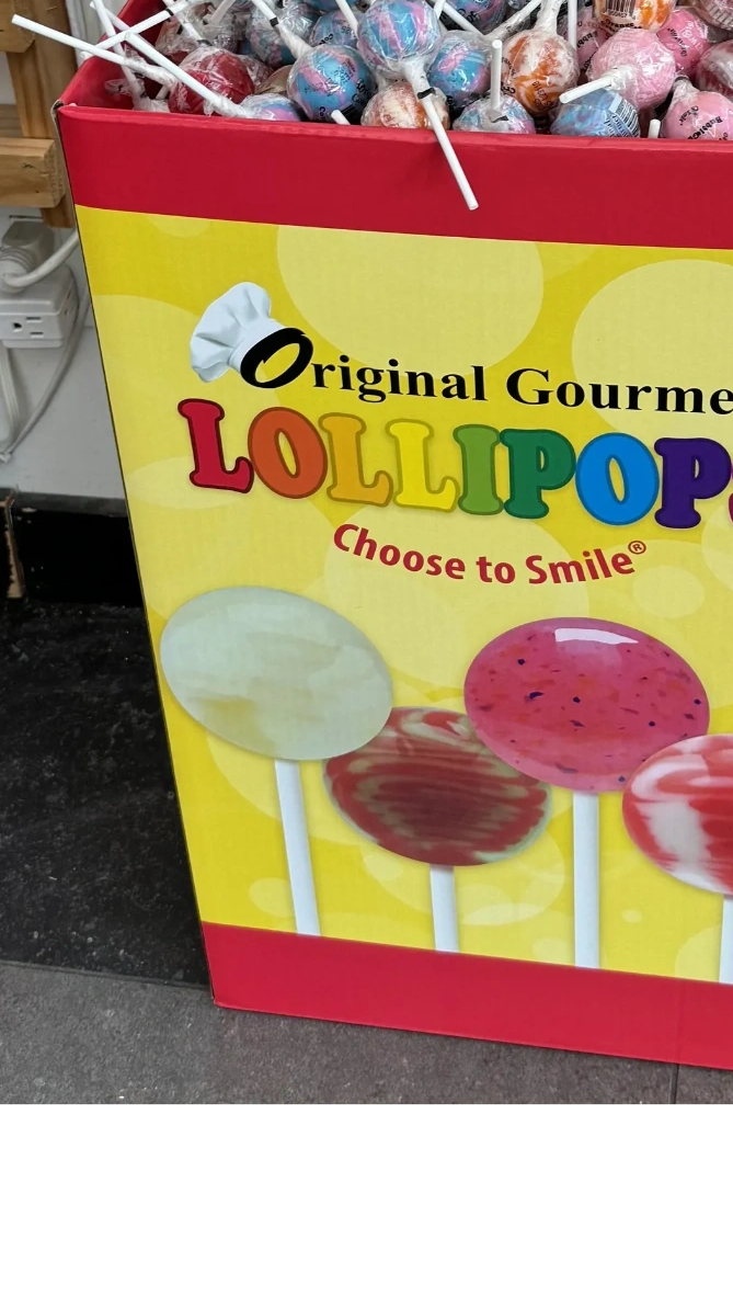 17 different flavors of Lollipops to choose from: Wild Cherry, Caramel Apple, Watermelon, Cotton Candy, Party Punch, Strawberry Shortcake, Pink Lemonade, Strawberry Banana, Green Apple, Bubble Gum, Banana Split, Birthday Cake, Orange Creamsicle, Sugar Cookie, Pina Colada, Hot Cinnamon and Blue Raspberry. Kids under 12!